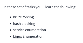 brute forcing , hash cracking , service enumeration , Linux Enumeration
