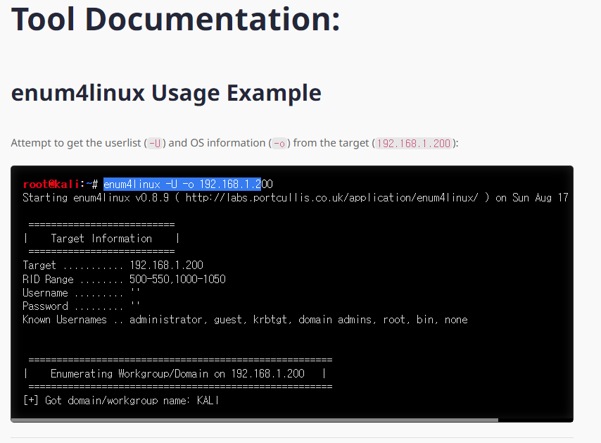 enum4linux 라는 samba 전용 스캔 툴로 스캔을 해보자