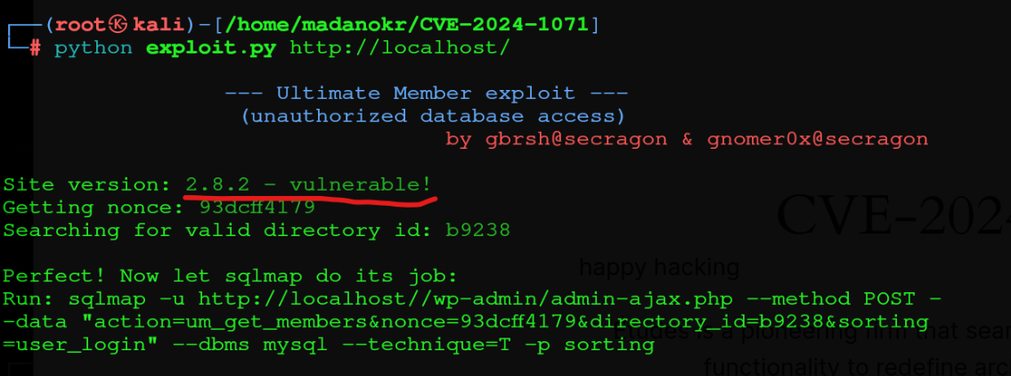 GitHub - gbrsh/CVE-2024-1071: Ultimate Member Unauthorized Database Access / SQLi