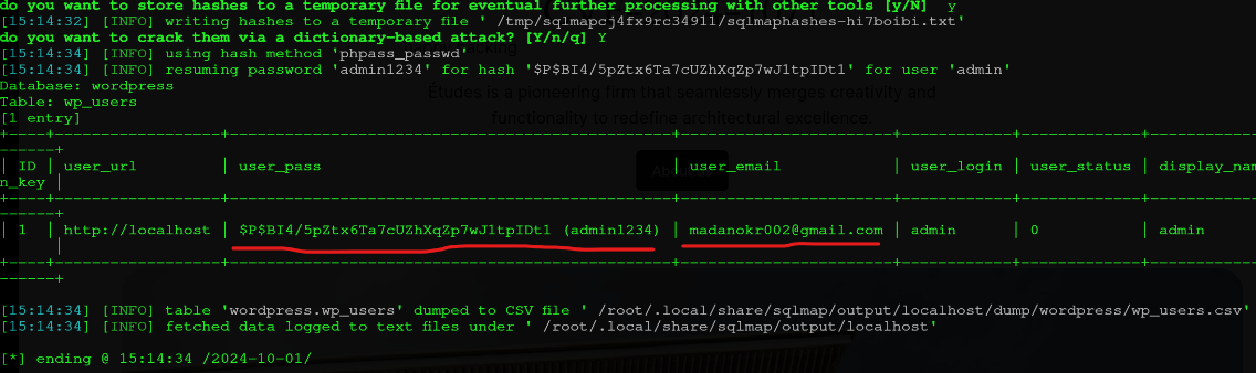이렇게 성공적으로 user_pass 와 user_email 그리고 user_login 까지 알아냈습니다