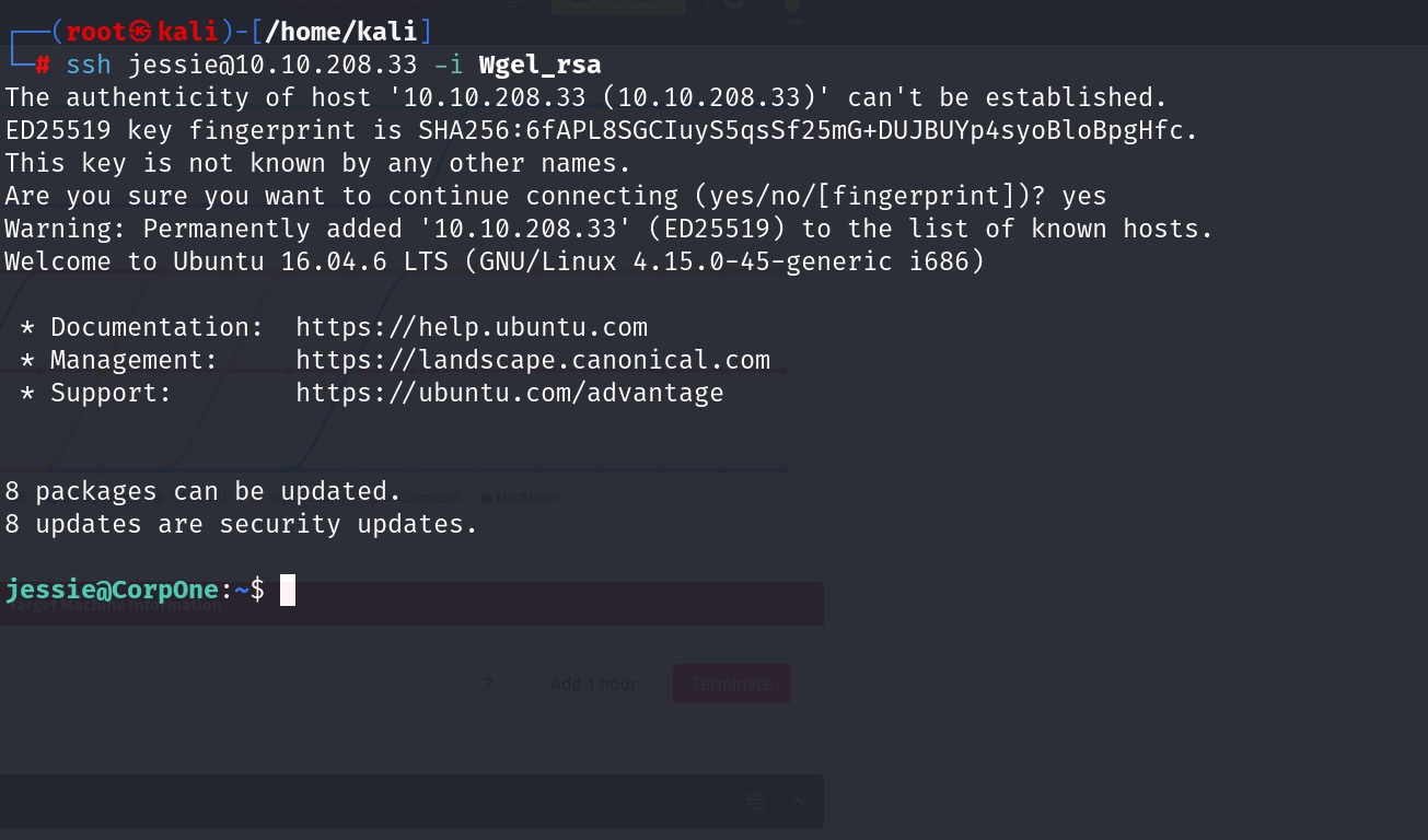 ssh jessie@10.10.208.33 -i Wgel_rsa
