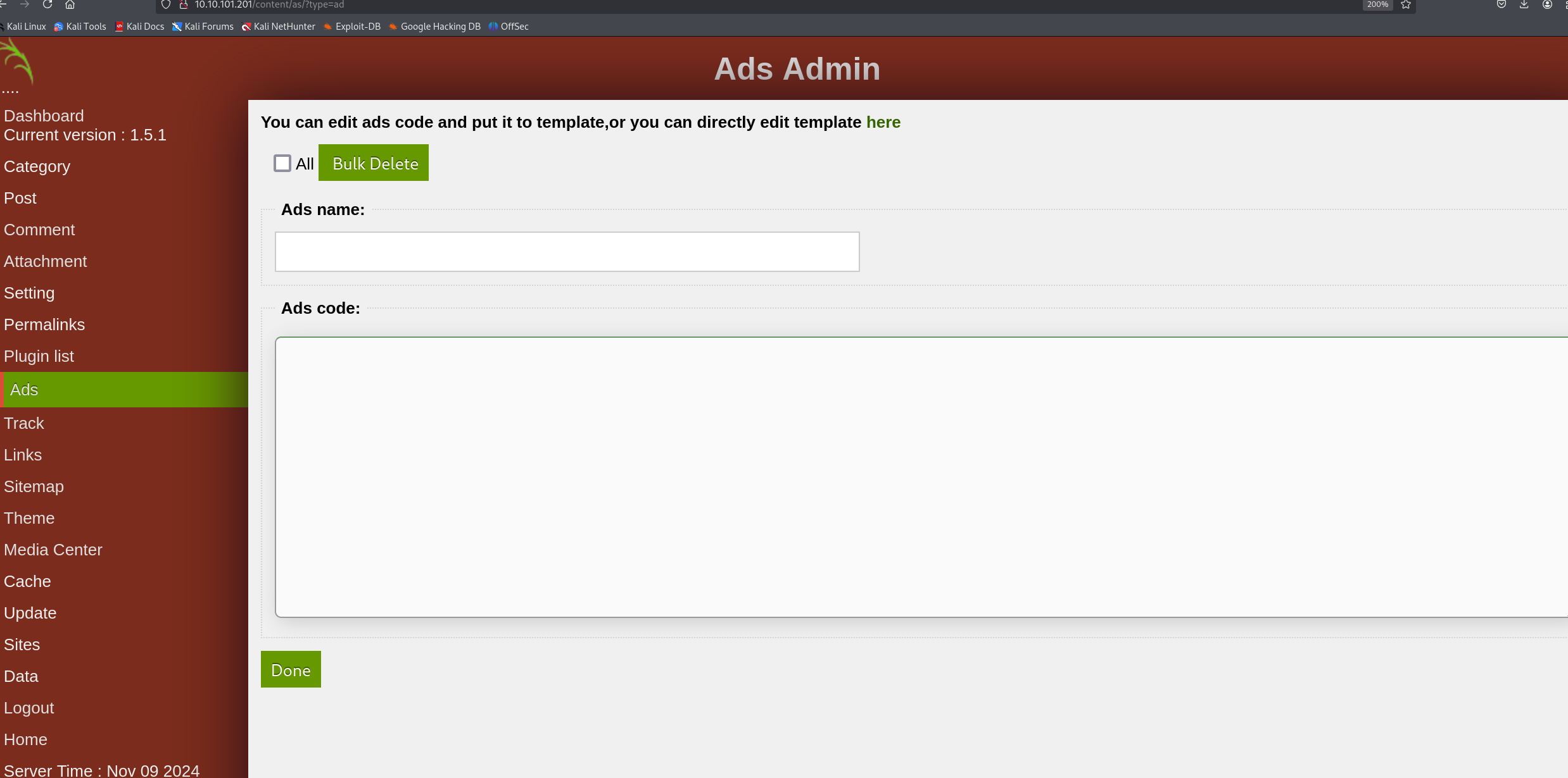Ads 에 코드를 올릴수 있는 메뉴가 보입니다