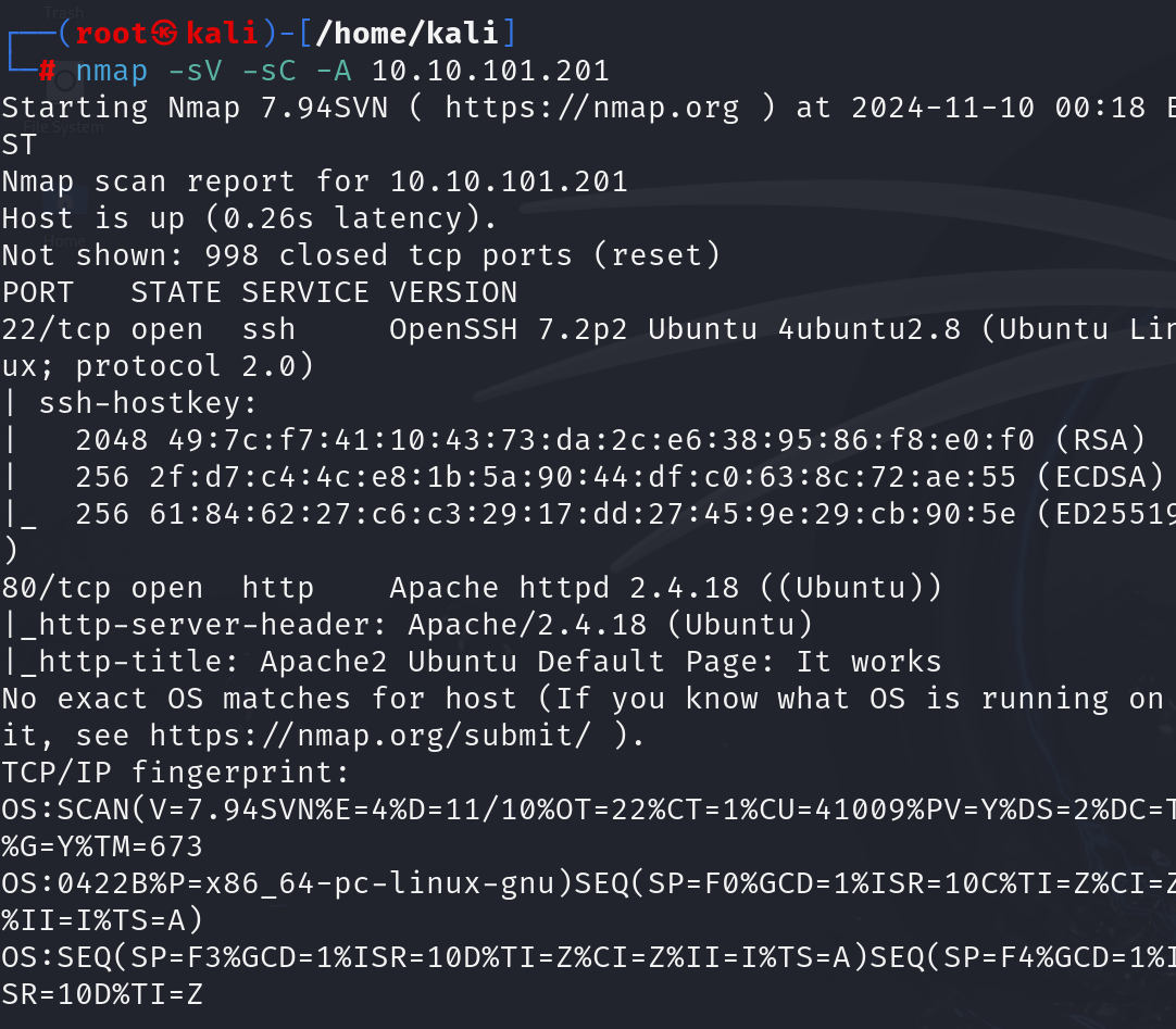 80/tcp open http Apache httpd 2.4.18 ((Ubuntu))