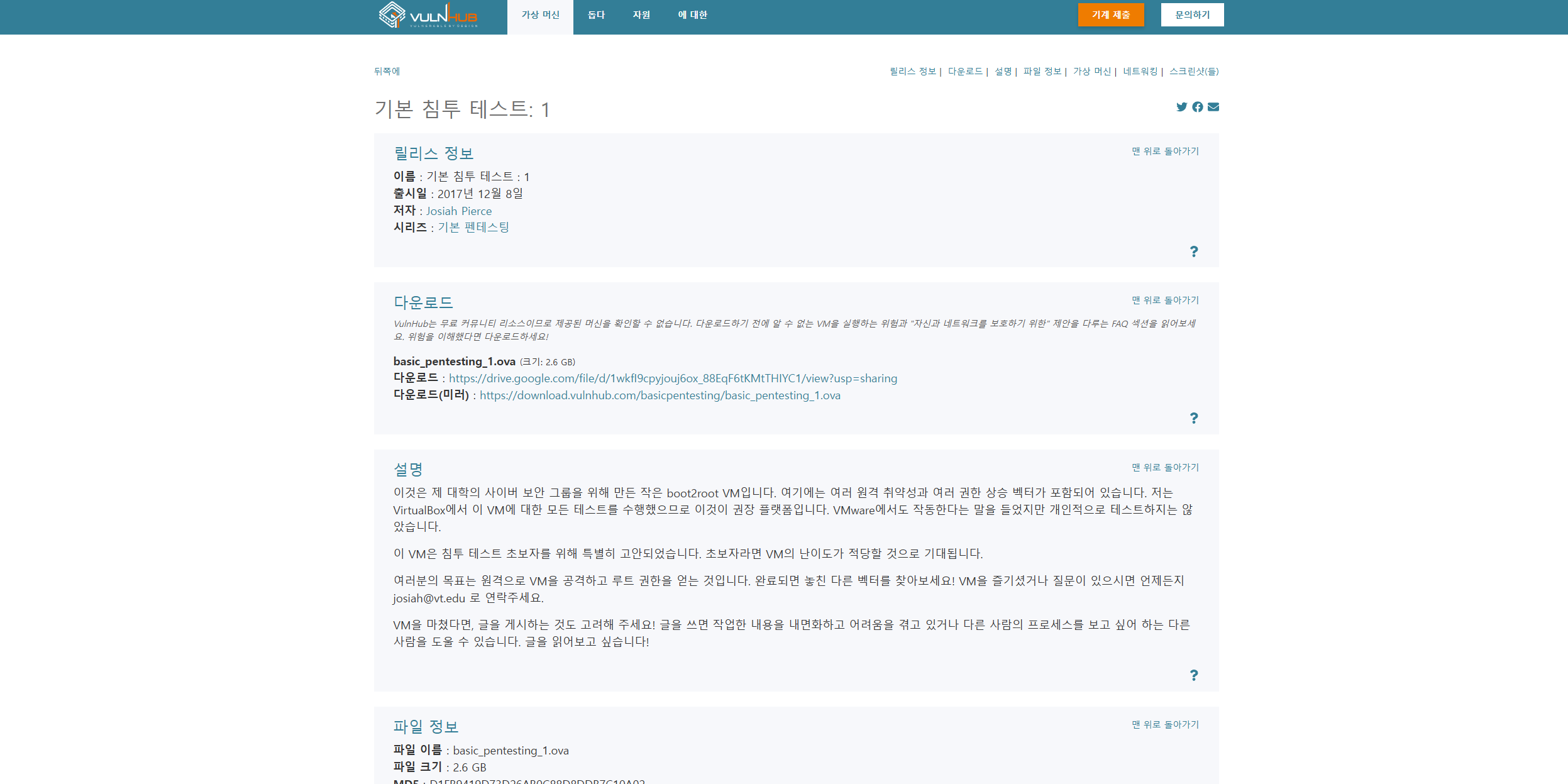 한줄평 : 첫 VulnHub 문제 아주 쉬웠다