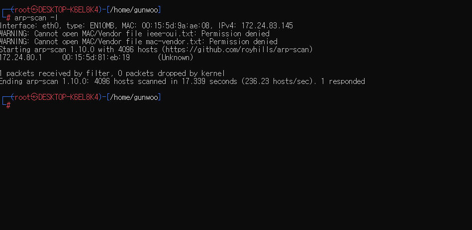 arp-scan 을 통해 주변에 보이는 OS 들을 포착할수 있다