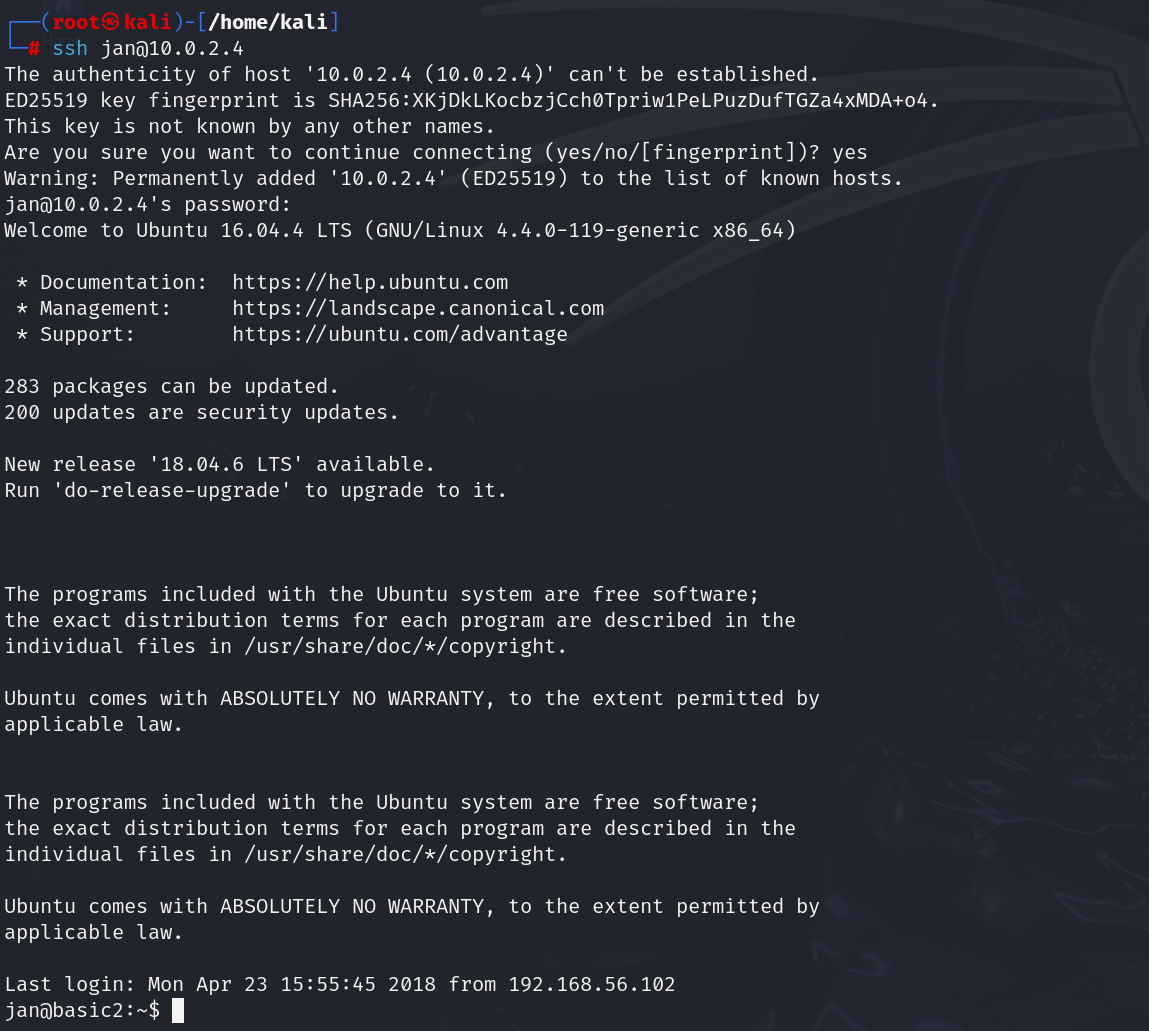 ssh jan@10.0.2.4