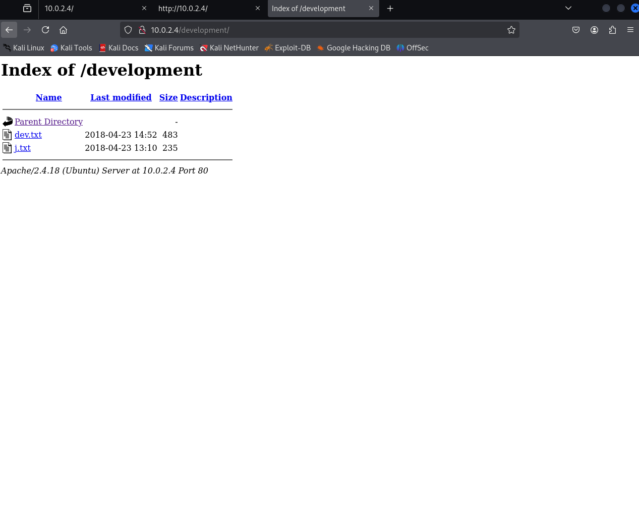 nikto -h http://10.0.2.4/