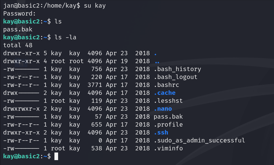 Kay 경로에서 pass.bak 라는 파일을 발견했다