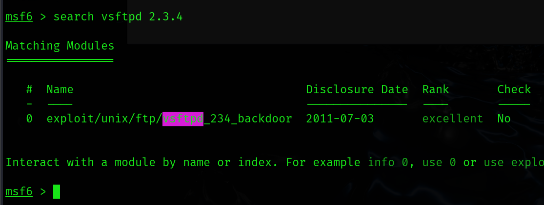이 명령어는 해당 vsftpd 백도어 취약점에 유무를 확인할수 있다