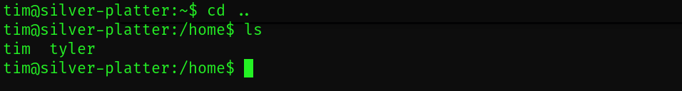 해당 /home 디렉토리에 tim 과 tyler 이 있습니다
