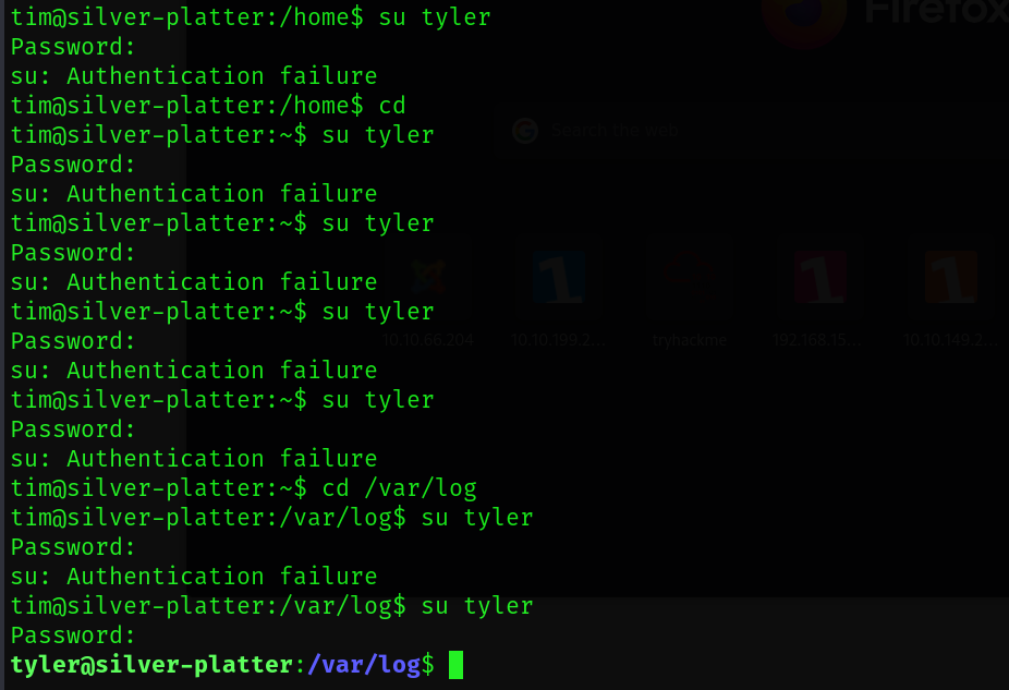 이 경로로 진입하여 로그인을 시도 했더니 성공적으로 tyler 계정에 진입했습니다