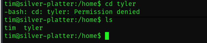 명령어를 시도해 tyler 경로로 진입 할수 있었습니다